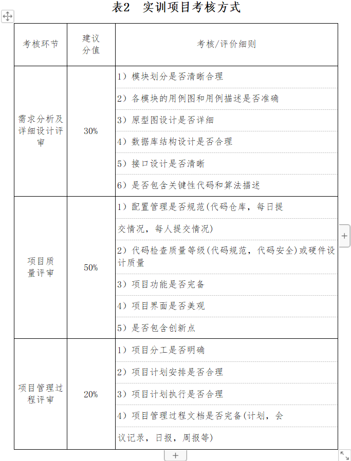 对照实训大纲,通过平台对学生的分析、设计、编码阶段的过程管理、项目质量的验收,对学生进行考核,评价学生实训效果的达成情况。分析该实训课的学生能力培养质量。实训老师出具实训分析报告。