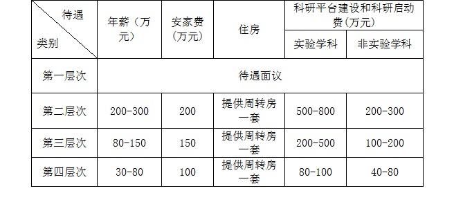 注:高层次人才除全职引进外,还可以柔性引进,具体待遇视在校工作时间、工作业绩等商定,“一人一策、一事一议”。