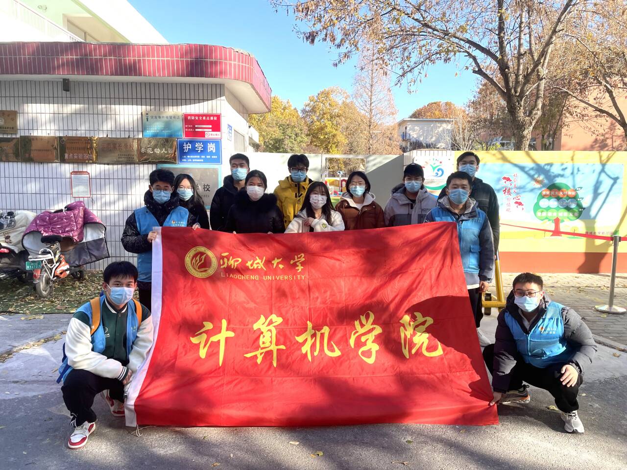 为了激发新时代青少年的爱国热情和民族自豪感,增强儿童的民族认同和文化认同,11月23日,聊城大学计算机学院爱国教育工作小组走进聊城大学附属幼儿园,开展“情暖桑榆,阳光童行”社区实践活动。