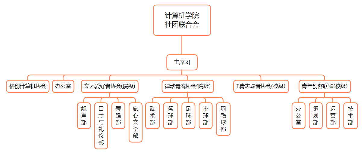 格创计算机协会包括技术部门、管理中心、三创活动中心及视觉设计工作室。