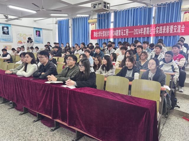 为持续深入学习贯彻习近平新时代中国特色社会主义思想,引领广大青年学生坚定信念听党话、跟党走,在社会课堂中“受教育、长才干、作贡献”,鼓励广大青年学生积极参与社会实践活动, 10月24日,计算机学院于11号楼C104开展第35期青马工程——2024年暑期社会实践表彰暨交流会。计算机学院辅导员史秋波、于庆生出席会议并担任颁奖人。