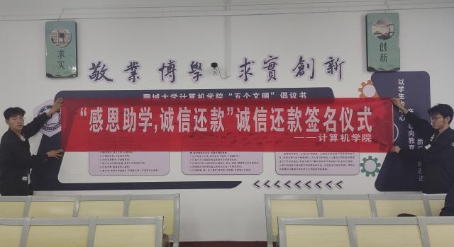 为了提高学生的诚信感恩意识,引导学生积极、按时还款,宣传发扬诚信还款的公民义务,5月25日,聊城大学计算机学院于10#C121举办“观看诚信还款宣传片,诚信还款横幅签名”活动。辅导员邹晓凤出席并主持此次活动。