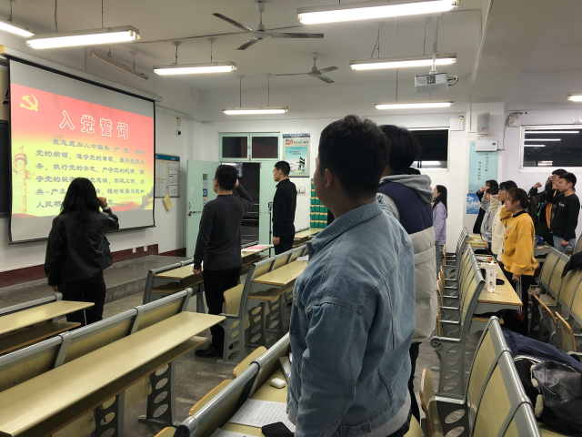 四个党支部分别召开会议,并严格按照流程进行。各党支部宣传委员宣读转正人员名单后,转正申请人逐一上台进行宣读转正申请书,汇报自己预备党员期间在思想态度、生活、学习等方面的表现情况,表达对党的忠诚和坚定不移跟党走的决心。入党介绍人分别汇报申请人的相关情况,组织委员说明对转正人员的综合考察意见,说明申请人是否基本具备正式党员条件,是否同意其按期转正。与会党员发表各自意见,分别对各党支部转正同志进行充分讨论并无记名投票表决。通过监票人、计票人严格核实投票结果,四个党支部共36名同志顺利通过党组织的审核,如期转为正式党员。最后,全体党员集体宣誓,重温入党誓词。至此,大会圆满结束。