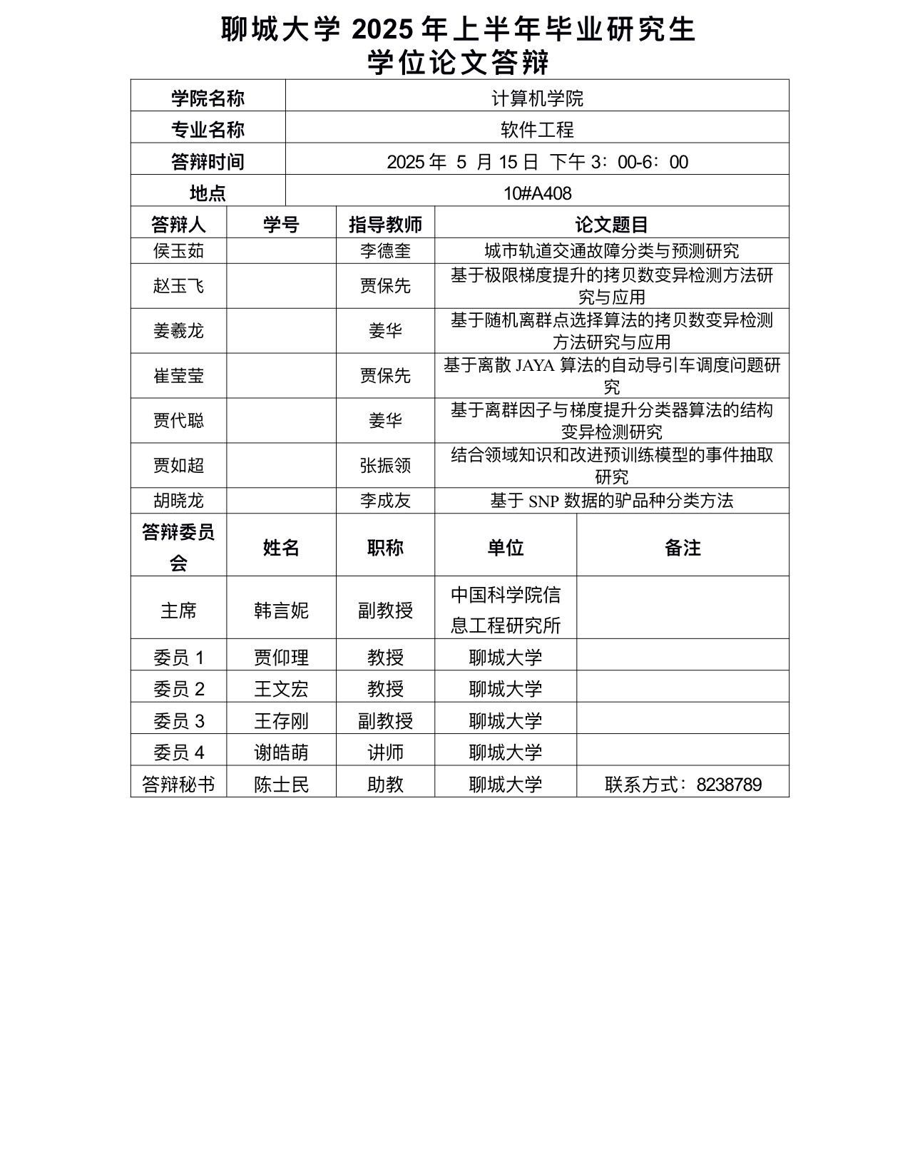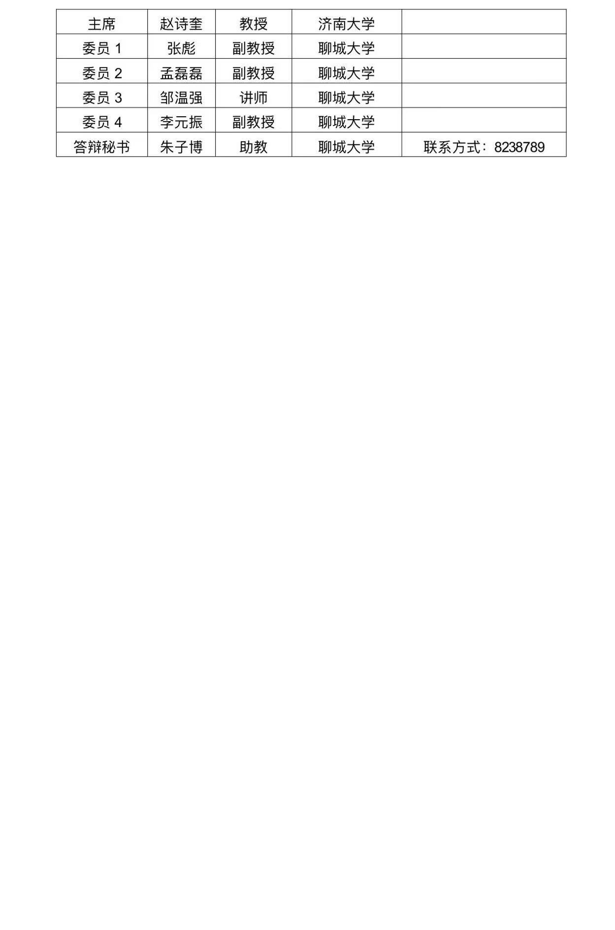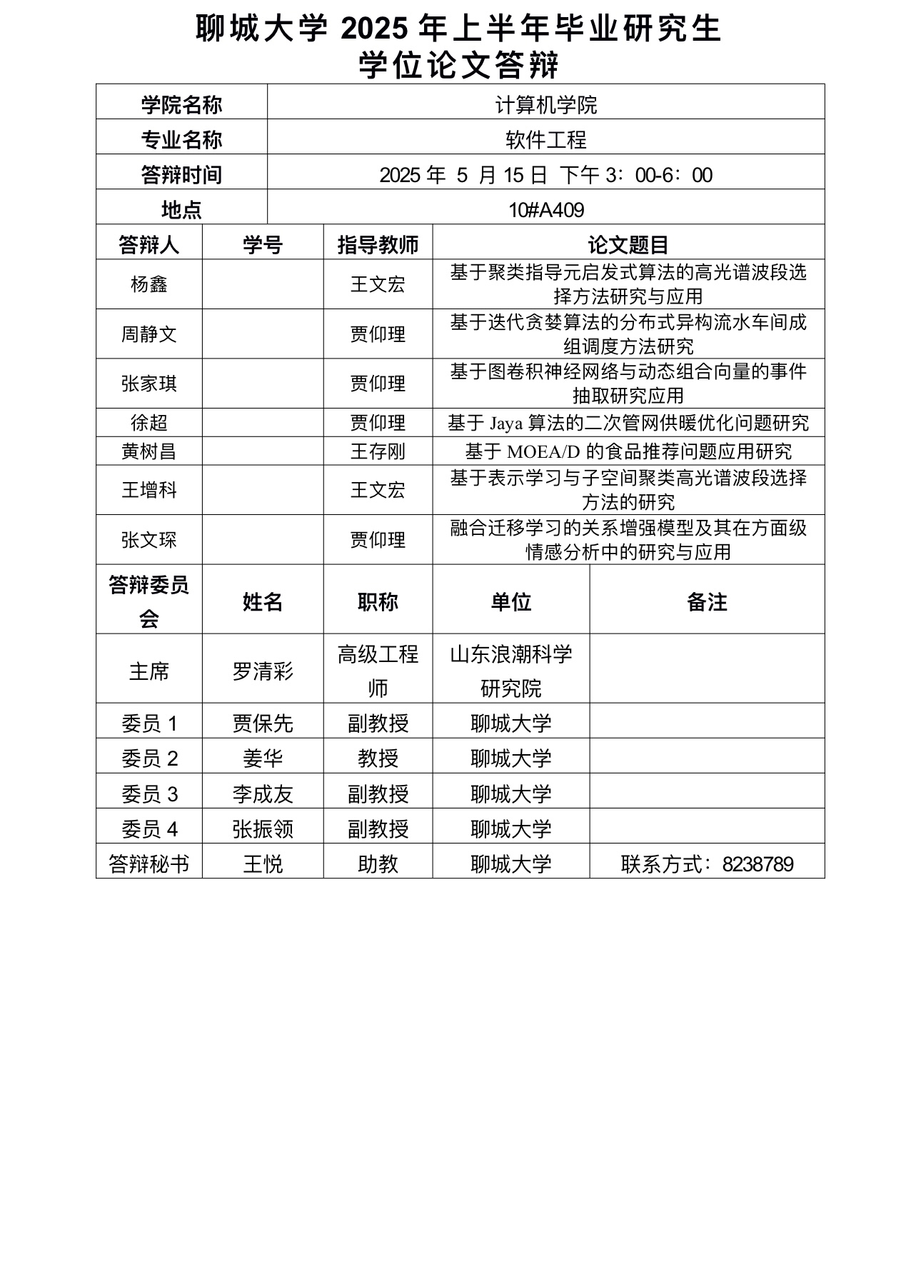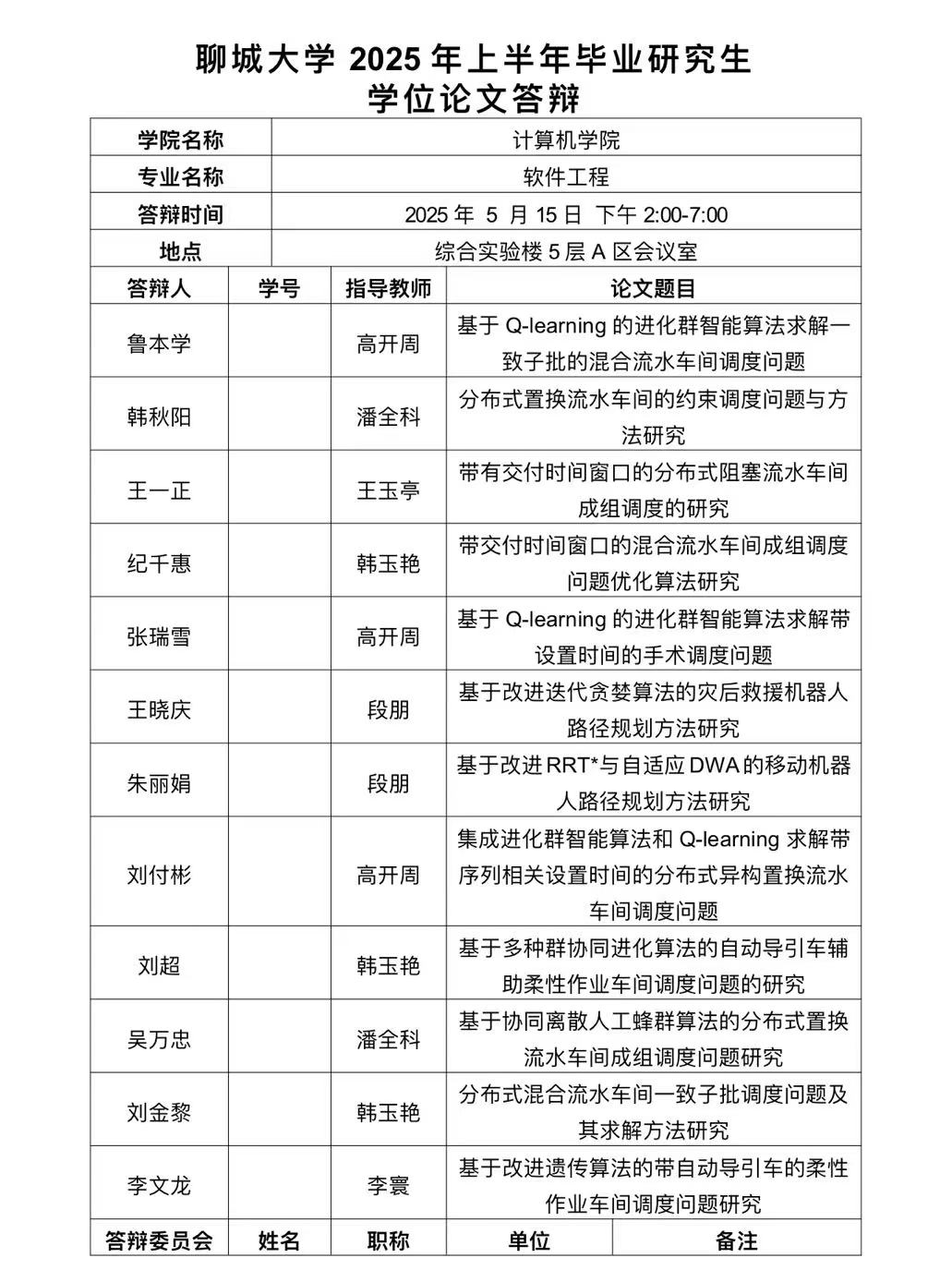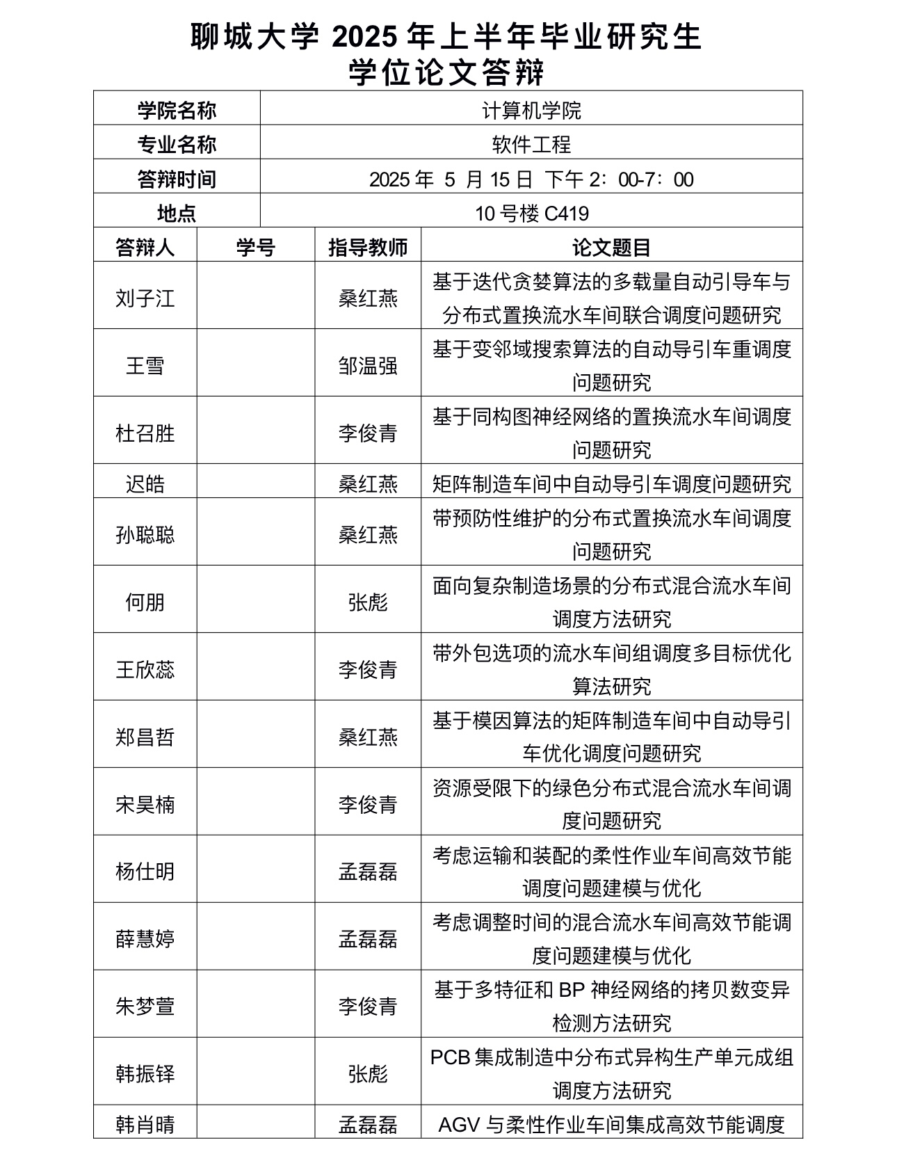 聊城大学2025年上半年毕业研究生学位论文答辩