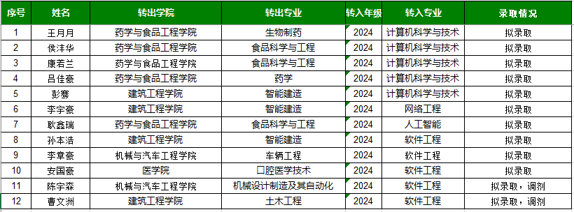 根据《计算机学院2025年转专业工作方案》,共有14名学生申请转入计算机学院相关专业,经过学院转专业工作小组的综合面试,拟录取以下12名学生,现予以公示。若有异议,请致电:0635-8238898。